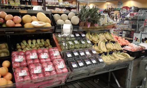 De har en stor utvalg av dagligvarer, inkludert frukt og grønt, salater, og andre varemerker.