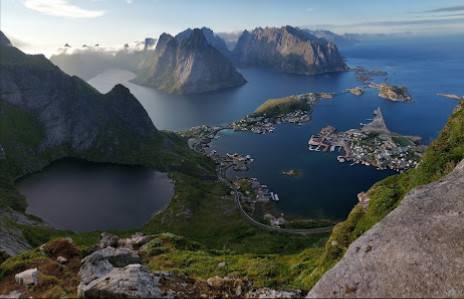 Reinebringen ligger i Reine, som er et av de flotteste stedene i Lofoten. Reine er kjent for sine vakre landskap, isolerte strender og idylliske fiskevÊr. Reinebringen er ikke sÄ vanskelig Ä nÄ, men den krever rimelig god fysisk form og klatresenterke.