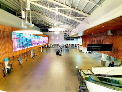 Kleine, maar onwijs effectieve en schone luchthaven. Alles is goed te vinden en er is ook mogelijkheid tot shoppen en eten na de security. Het personeel is uitermate vriendelijk, echt bizar. Zelfs op de vroege ochtend volop glimlachen en allerhartelijkst. Zowel de mensen bij de security als de gate agents. Wow.